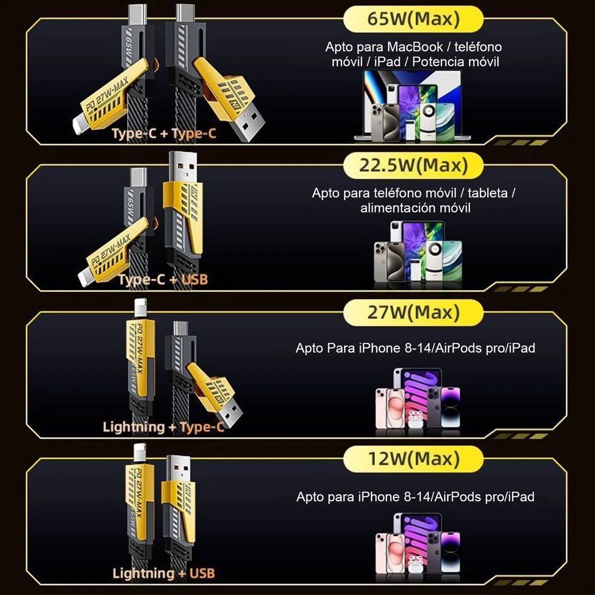 : Cable 4 en 1 compatible con cable iphone y cable tipo c carga rapida, ideal para smartphones, tablets y laptops con carga rápida y eficiente