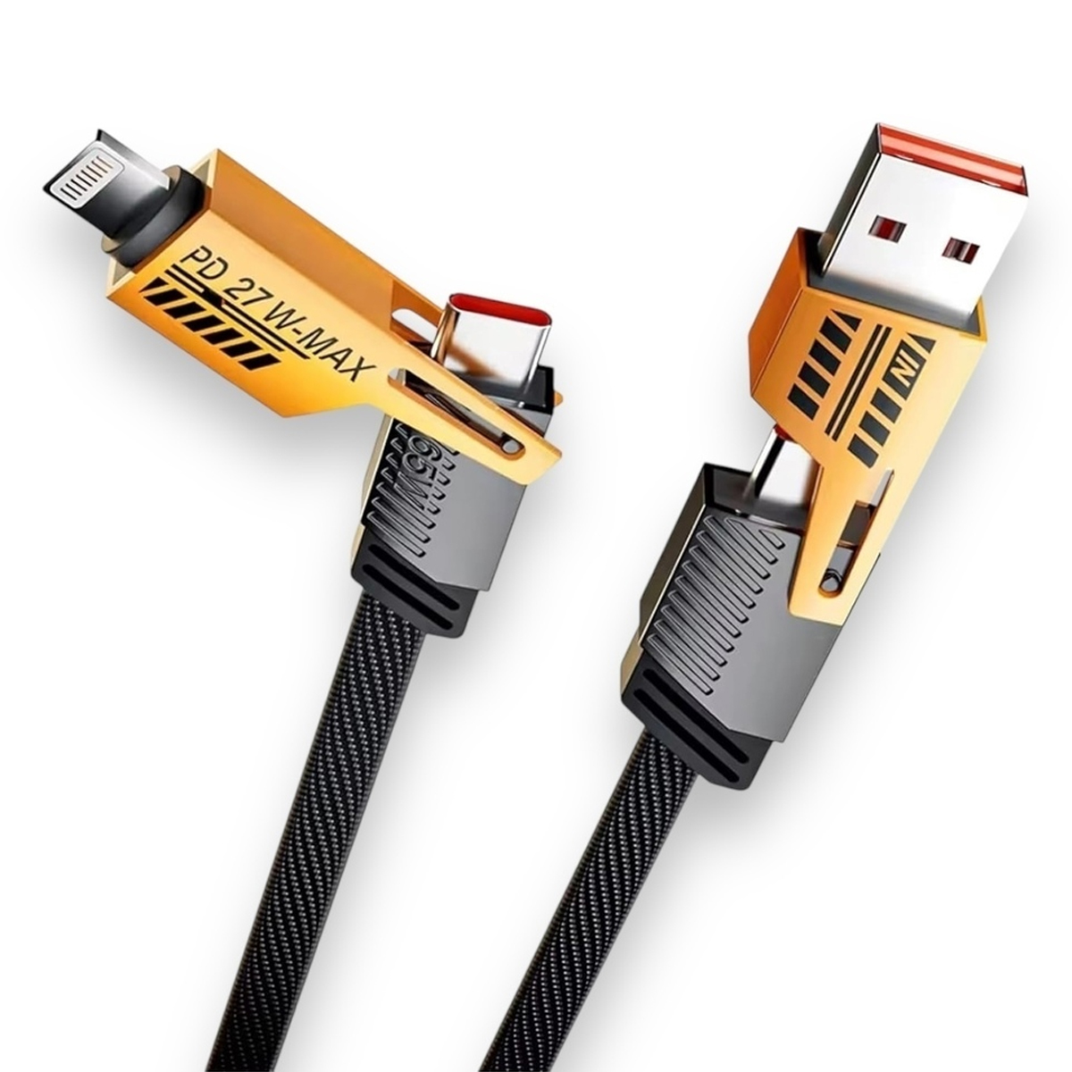 Este cable USB 4 en 1 es la solución perfecta para todos tus dispositivos. Con compatibilidad con cable iphone y cable tipo c carga rapida, ofrece carga rápida y eficiente para smartphones, tablets, laptops y más. Su diseño reforzado y colores vibrantes (negro y amarillo) lo hacen duradero y divertido, ideal para el uso diario. Ya sea en casa, oficina o viaje, este cable asegura conexiones estables y seguras, haciendo tu vida más fácil con un toque de humor. Además, es compatible con cable usb c y cable tipo c, proporcionando versatilidad y rendimiento superior.