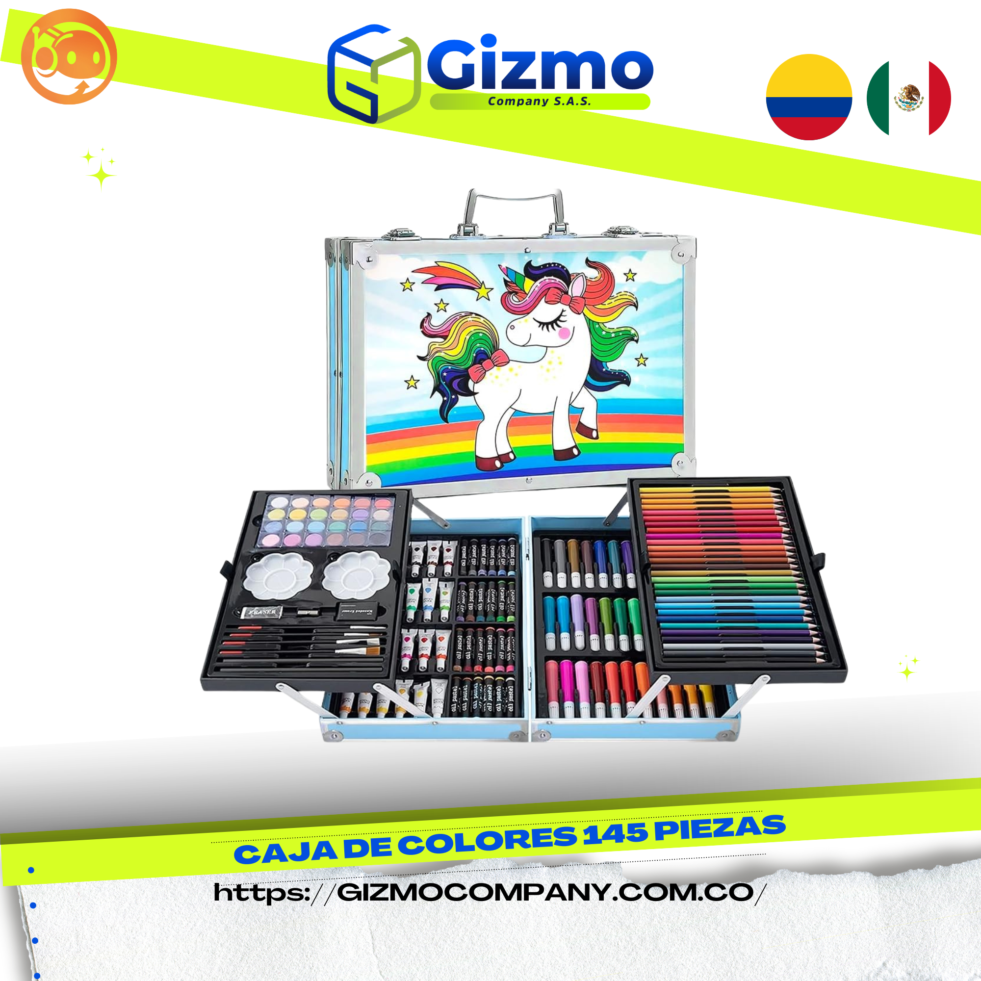 El Set Artístico 145 piezas es la herramienta perfecta para explorar, aprender y crear. Diseñado para artistas en crecimiento, estudiantes, niños y adultos que aman dibujar, pintar y dejar volar su imaginación. Todo protegido en un estuche compacto, resistente y portátil, ideal para usar en casa, el colegio o cualquier lugar.