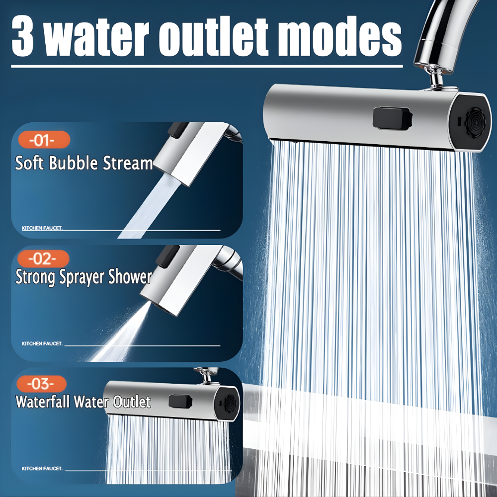 Filtro de Purificación de Agua: La salida de agua está diseñada como una pantalla de filtro de purificación de agua, Que puede filtrar eficazmente los sedimentos y el agua es más saludable. El grifo del filtro de salpicaduras universal tiene un modo de presión de agua mayor como un cabezal de ducha, Y tiene un fuerte impacto y puede eliminar las manchas rápidamente.