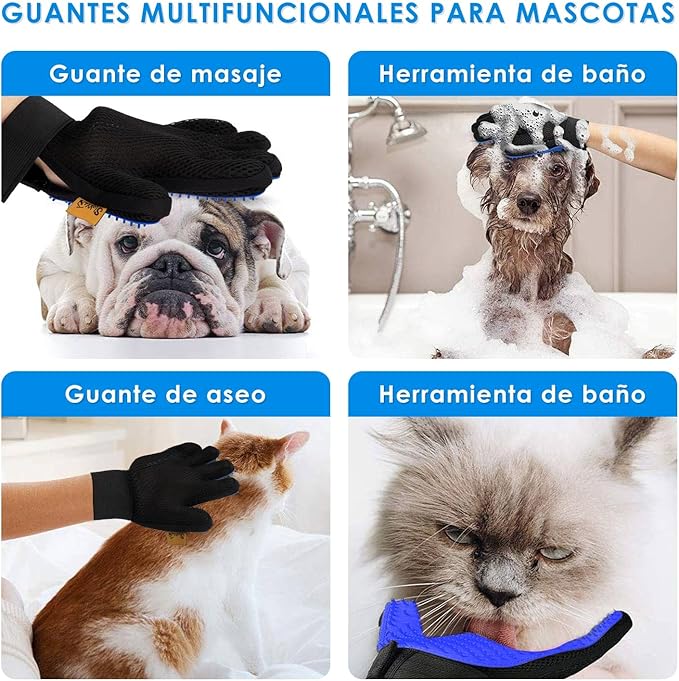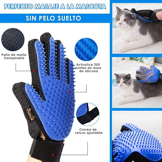• Diseño de Cinco Dedos: Los guantes para mano izquierda y derecha están diseñados con una textura de cepillar de cinco dedos para una interacción afectiva con tu mascota al masajear y quitar la pelusa suelta encima