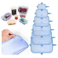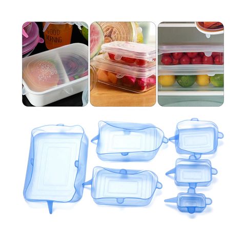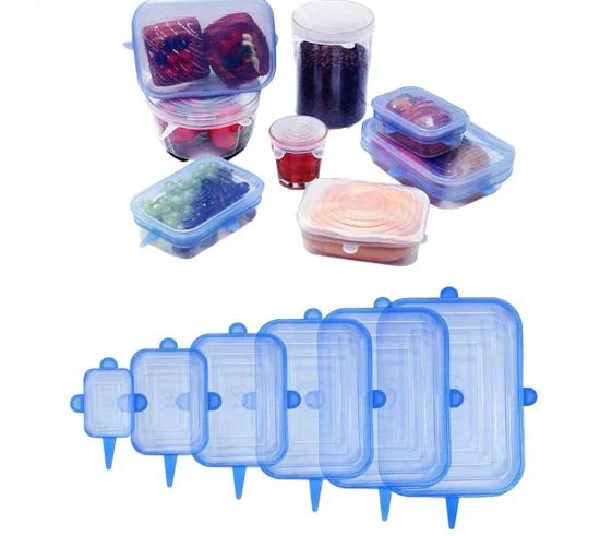 El paquete contiene seis tapas de silicon con forma rectangular para recipientes trastes con froma cuadrada o similar