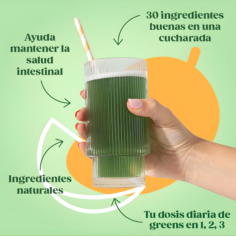Combate la hinchazón de forma natural - Nuestro polvo verde de alta calidad contiene enzimas digestivas naturales y probióticos sin lácteos para facilitar la digestión, mejorar el equilibrio intestinal y aliviar la incómoda hinchazón. Te sentirás más ligero y mejor cada día.