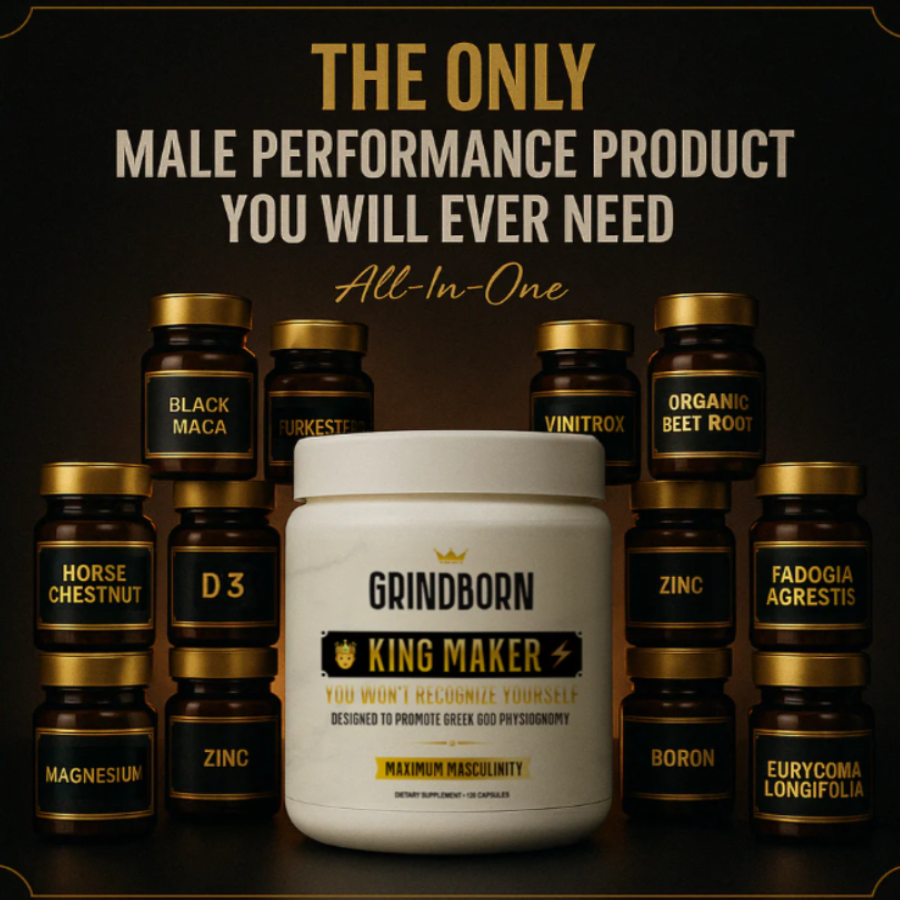 King Maker de Grindborn no es solo un suplemento, es una herramienta para tu cuerpo y mente. Formulado con ingredientes respaldados científicamente, te ayuda a esforzarte más, recuperarte más rápido y mantener una postura erguida.