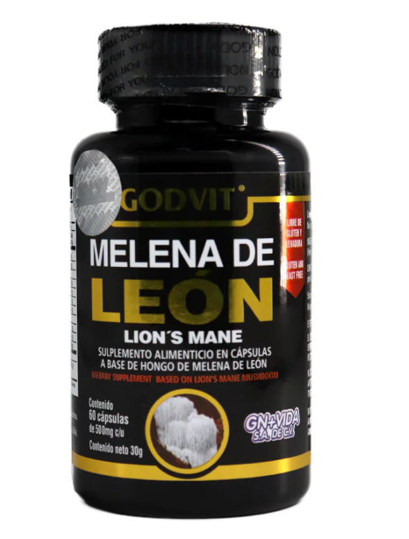 Melena de León Godvit es un suplemento nutricional en cápsulas, diseñado para quienes buscan mejorar su bienestar físico y mental.